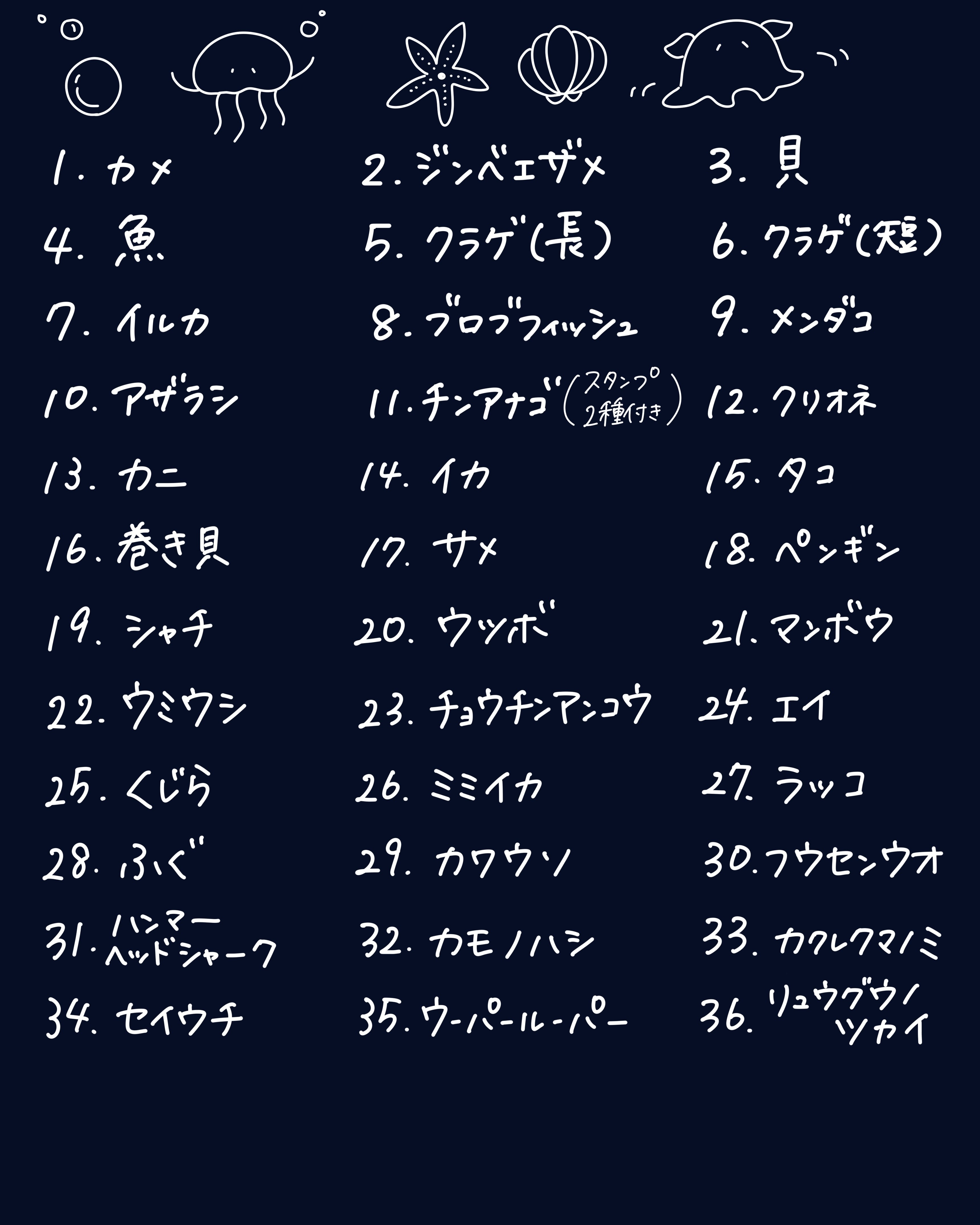 海と水辺のいきものシリーズ全36種類の中から12個選んで購入出来るセットです。
